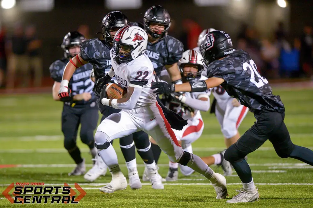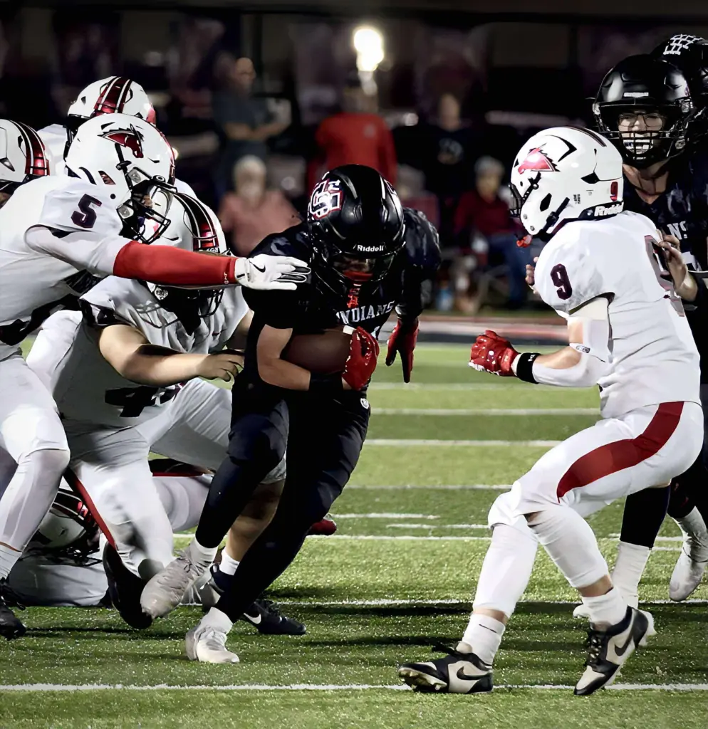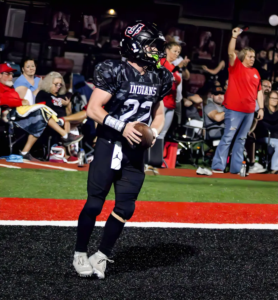 The Indians struck quickly with a pair of first quarter touchdowns to jump out to a 16-0 lead. The Mules answered with three consecutive scores on two touchdowns from Michael Barner and a third from Logan Tullis to grab a 22-16 second quarter lead.