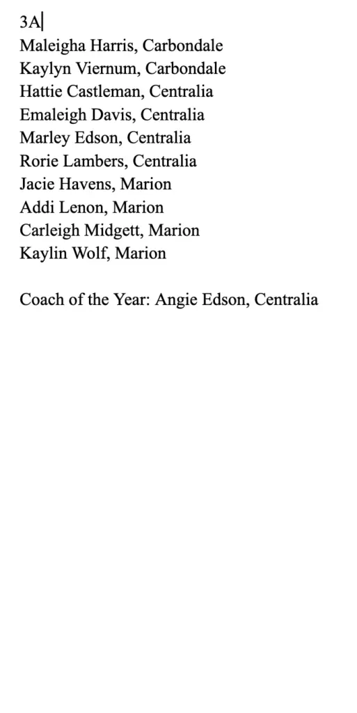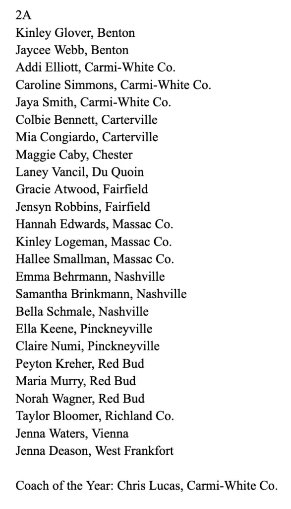 Here is the list of All-South Volleyball selections from the Southern Illinois Coaches Association: