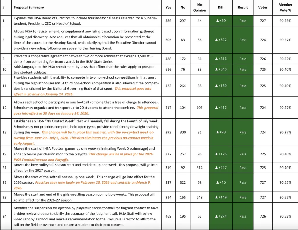 The IHSA reports more than 90% of member schools voted in this year’s legislation process.